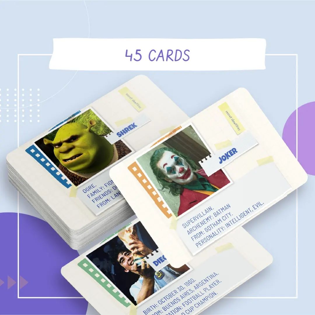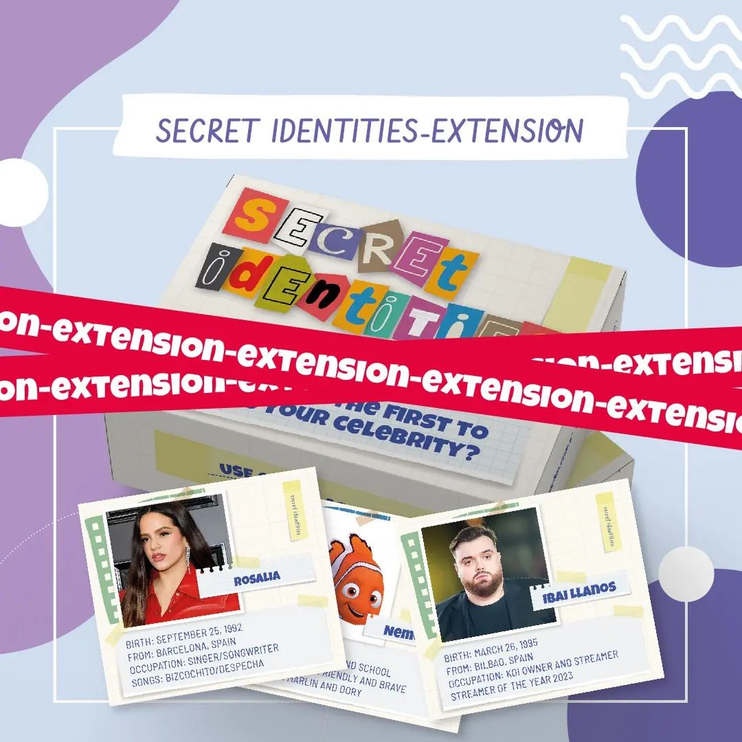 Secret Identities listoo. Ya lo podés encontrar en nuestra web. Esta edicion viene con 45 tarjetas que contienen celebridades de peliculas, TV, dibujitos, musica, historia y deporte. Cada tarjeta incluye la foto, el nombre e informacion clave de cada famoso/famosa. La extension del juego trae 30 tarjetas nuevas y modernas (25 personas reales y 5 dibujos animados). Se puede jugar con niños/as, adolescentes y también adultos!